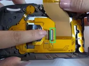 Переверните белую защёлку пластиковой лопаткой и извлеките шлейф.