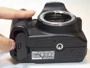 Найдите отсек для аккумулятора на нижней части камеры прямо под диском режимов.