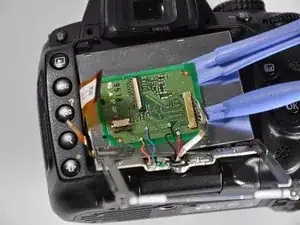 Подденьте печатную плату, отлепив её от клея на задней стороне экрана. Используйте лопатку или инструмент для открытия.