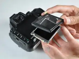 Разложите экран. Четыре винта Philips #00 крепят черный пластиковый корпус.