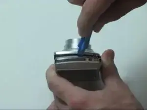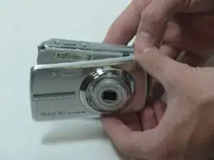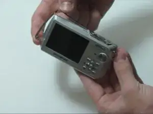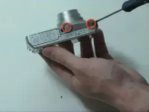 Отверткой Phillips №0 отвинтите винт с правой стороны фотоаппарата