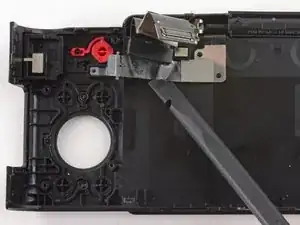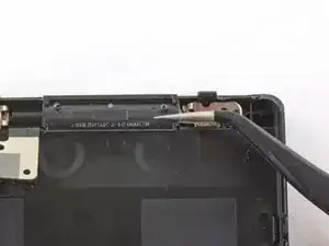 Пинцетом снимите пластиковую крышку шарнира ЖК-экрана.