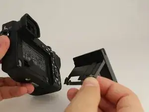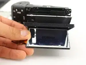 Осторожно, не порвите чёрный плоский кабель, соединяющий ЖК-экран с основным корпусом камеры. В данном примере кабель был перерезан для демонстрации.