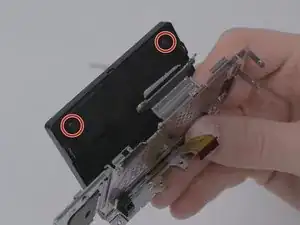 Поднимите металлическую пластину и ЖК-экран, отделив их от корпуса камеры.