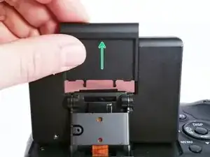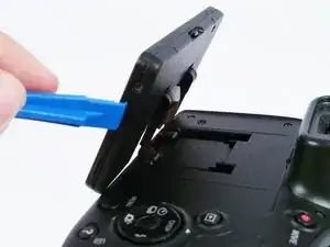 Снимите пластиковую крышку с задней части ЖК-дисплея, просто сдвинув её вверх и сняв с камеры.