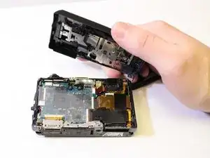 Чтобы вынуть ЖК-экран, потребуется аккуратно приподнять внутренние компоненты камеры.