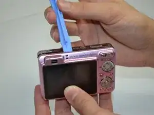 Осторожно отденьте серебристую панель на левой стороне камеры пластиковым монтажным инструментом.