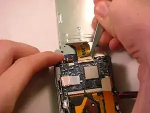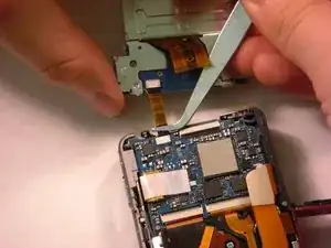 С помощью пинцета аккуратно извлеките маленький шлейф из его разъёма на плате.