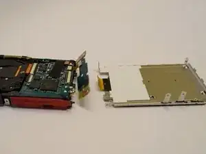 Примечание: будьте осторожны, чтобы не вырвать сборку из камеры. Она всё ещё прикреплена шлейфами!