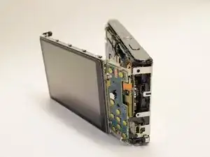Осторожно подденьте ЖК-экран и отделите его от корпуса камеры.