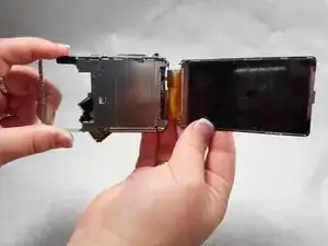 Аккуратно оттяните заднюю часть камеры, где находится ЖК-экран.