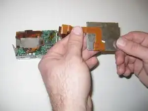 Аккуратно отсоедините шлейф данных ЖК‑экрана, схватив тот конец, который подключён к плате, и вытащив его.