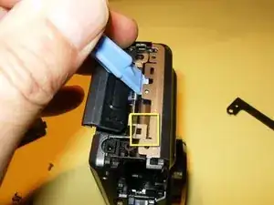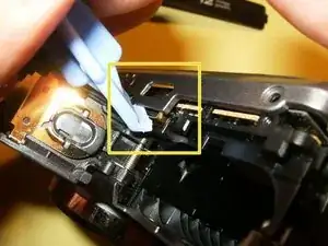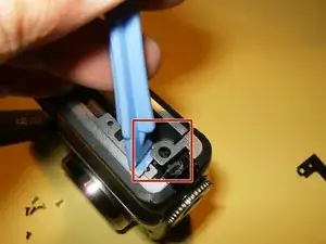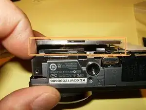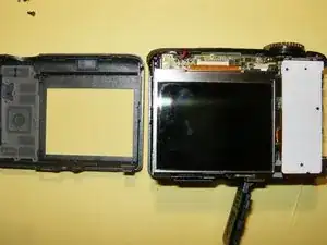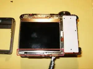 Отделите заднюю крышку от камеры, покачивая монтажную лопатку. У вас должен появиться ясный обзор ЖК‑экрана в его рамке.