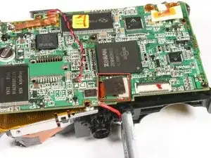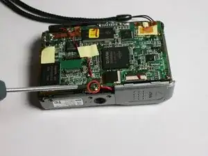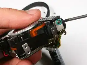 Используйте отвёртку Phillips #00, чтобы вывернуть четыре винта (3 мм) с левой стороны камеры. Сохраните все винты для последующей сборки.
