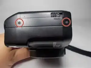 Снимите винты JIS #00 длиной 5 мм с нижней части камеры.