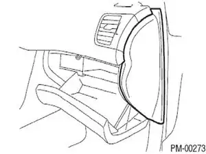 Осторожно подденьте и вытащите панель приборной панели, расположенную справа от перчаточного ящика.