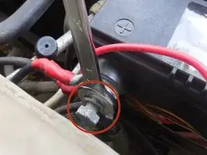 С помощью гаечного ключа на 8 мм ослабьте болт отрицательной клеммы.