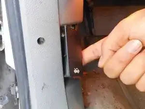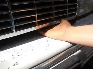 Подойдите к передней части автомобиля и поднимите защёлку капота вверх, возможно, придётся немного нащупать её.
