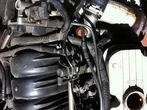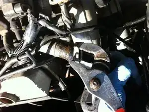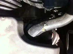 В трубке, вероятно, ещё осталась охлаждающая жидкость, поэтому постарайтесь не разлить её повсюду при снятии патрубка.