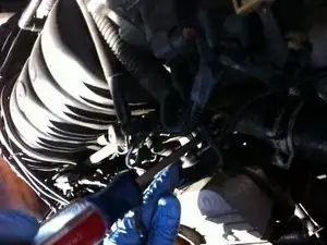 Вам, вероятно, понадобится ещё одна пара рук. Если трудно работать в ограниченном пространстве, можно полностью снять корпус воздушного фильтра для лучшего доступа.