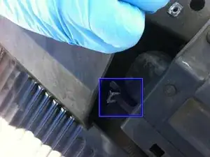 Оттяните корпус воздушного фильтра, чтобы открыть доступ к другому концу патрубка, спрятанному под передним краем корпуса воздушного фильтра.
