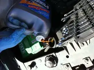 Долейте охлаждающую жидкость, наливая её непосредственно в радиатор, затем закройте крышку радиатора. Рекомендуется использовать воронку, чтобы не пролить охлаждающую жидкость.