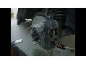 Распылите проникающую смазку (Liquid Wrench или WD-40) на два болта 17 мм, удерживающие тормозной суппорт.