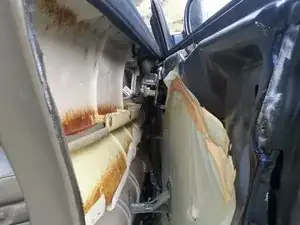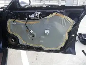 Полностью снимите внутреннюю панель двери, обнажив внутреннюю часть двери и передний динамик.