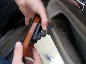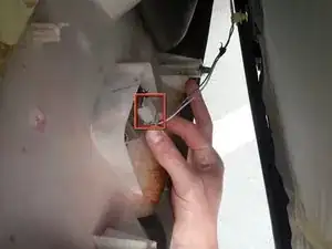 Как и в предыдущем шаге, дотянитесь назад, сожмите защёлку и потяните прямо назад, чтобы отсоединить проводку замка двери.