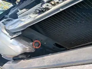 Снимите винт/болт на 10 мм (в зависимости от года выпуска), удерживающий бампер. Он находится в передней нише колеса со стороны пассажира и водителя.