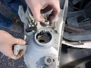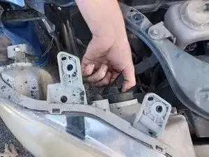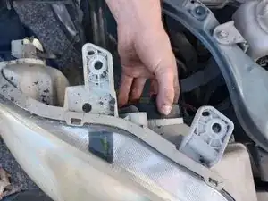 Поднимите фиксирующую скобу, освободив лампу фары.