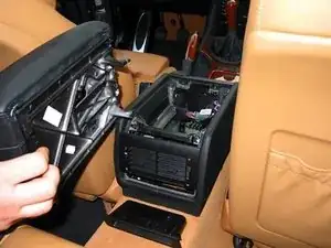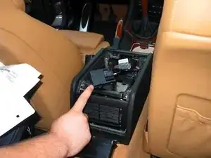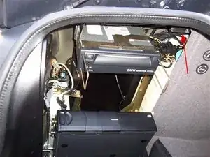 Защёлкните новый выдвижной блок на место и подключите к штатным разъёмам проводки под подлокотником у верхней части пластиковой панели. Если ваш BMW выпущен в 2002 году или ранее, разъёмы расположены под пластиковой отделкой в нижней части отсека.