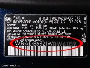 1) Дата производства BMW. Найдите VIN автомобиля и проверьте его через онлайн-декодер VIN или определите код даты производства, нанесённый на табличке с VIN. (Вверху справа на фото)