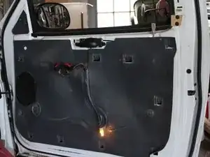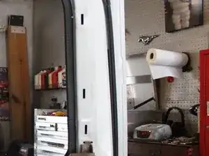 Удалите два винта за окантовкой двери и небольшой участок выше двери. Захватите обшивку двери и потяните вверх — она должна легко сниматься, но не снимайте её полностью, так как перед полным демонтажем остаётся ещё один шаг.