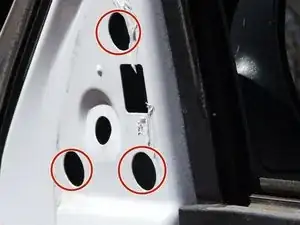 Удалите три крепёжных винта, следя, чтобы зеркало не упало; затем установите новое зеркало, совместив его с отверстиями, и закрепите винтами.