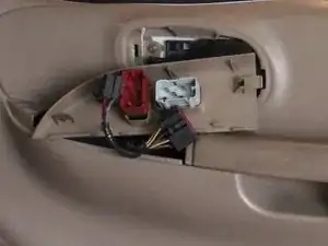 Снимите панель управления стеклоподъёмниками под ручкой — она должна также защёлкиваться, как и окантовка двери. Отключите электрические разъёмы.