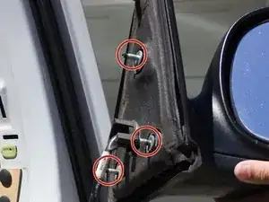После удаления винтов зеркало может упасть. Либо попросите помощника подстраховать его, либо опустите стекло, чтобы просунуть руку и удержать зеркало самостоятельно.