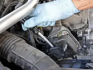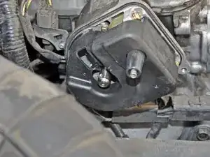 Используйте трещотку с адаптером 1/4" и глубокую головку на 8 мм, чтобы снять три шестигранных болта, крепящие крышку распределителя к двигателю.