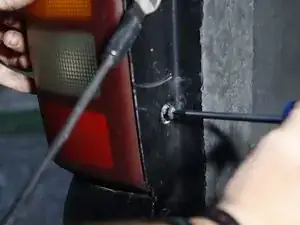 Установите весь фонарь на место так, чтобы отверстия для винтов на стороне крышки багажника совпали.