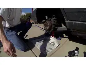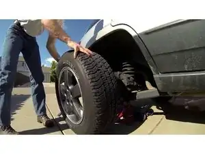 Осторожно поднимите одну сторону оси домкратом достаточно высоко, чтобы соответствующее колесо оторвалось от земли на 2–5 см