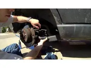 Снимите суппорт, внутреннюю тормозную колодку и наружную тормозную колодку