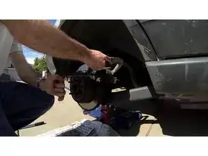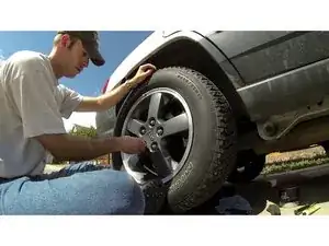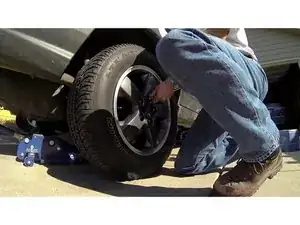 После опускания автомобиля на землю повторно затяните гайки моментом 95 фут-фунтов.