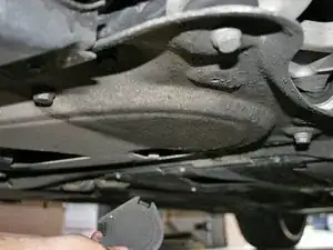 У E46 M3 четыре штатных точки для домкрата (по две с каждой стороны), но также можно поднять автомобиль за эти две центральные точки (по одной спереди и сзади). Затем можно легко установить опорные стойки под площадки подъёма на порогах/накладках.