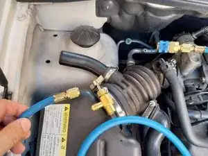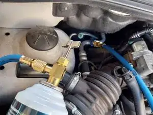 1. Поскольку мы переходим с хладагента R-134a на Eco D2, остатки старого хладагента не должны смешиваться с новым. Мы создадим вакуум в системе, что также поможет определить, есть ли в контуре крупная утечка.