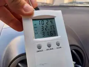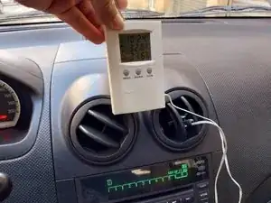 Чтобы видеть термометр, находясь снаружи автомобиля рядом с манометром, можно поместить его в перчаточный ящик или вывести наружу через дверь, если длина провода позволяет.