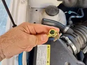 Можем установить крышку на сервисный порт низкого давления автомобиля и ОСТАНОВИТЬ ДВИГАТЕЛЬ.