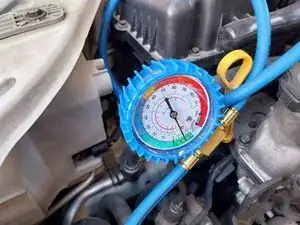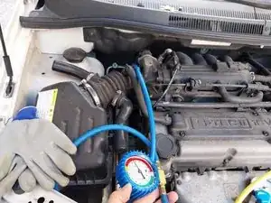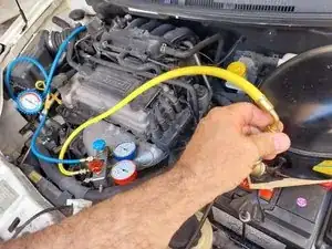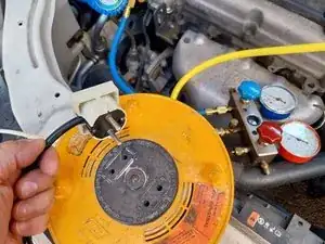 В автомобиле, указанном в этом руководстве, в системе есть следы R-134a. Это хорошая новость, как объясняется в предыдущем руководстве. Это означает, что автомобиль потерял хладагент из-за неэффективности системы, а не из-за протечки, которую необходимо предварительно устранить. Последняя заправка была проведена два года назад.