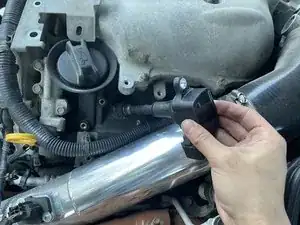 Используйте головку на 10 мм с трещоткой, чтобы снять болт, удерживающий катушку зажигания.
