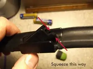 Первое, что говорит руководство — поднимите оба рычага и снимите щётки. Как и у многих щёток, этот узел «защёлкивается» на рычаге, при скольжении сборки от основания рычага в изогнутый конец, где он фиксируется. Нажмите пружинную защёлку в сторону рычага и осторожно сдвиньте щётку вниз к основанию рычага.