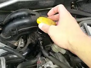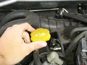 Отвинтите жёлтую крышку заливной горловины масла руками.